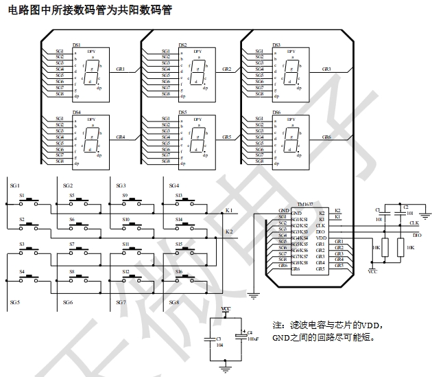 顯示模式(8 段×6 位),支持共陽(yáng)數(shù)碼管輸出