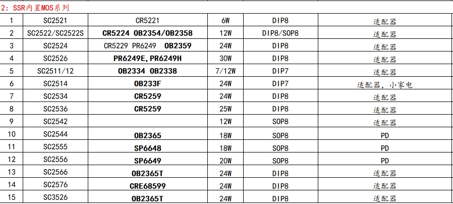 SSR內置MOS系列是鼎芯微電子推出的另一類高效電源管理芯片,適用于適配器、小家電等應用場景。以下是該系列部分型號及其替代型號: