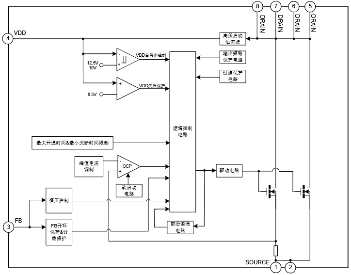 | 內(nèi)置MOS管 | 650V | - | 800V |