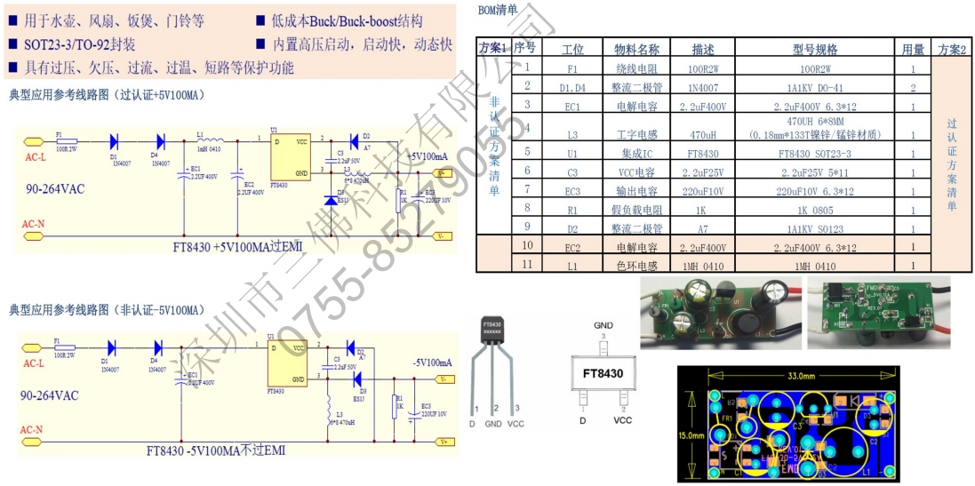 低成本Buck/buck-boost結(jié)構(gòu),SOP7封裝,集成續(xù)流和反饋二極管內(nèi)置高壓啟動,啟動快,動態(tài)快具有過壓、欠壓、過流、過溫、短路等保護(hù)功能。用于水壺、風(fēng)扇、飯煲、門鈴等。