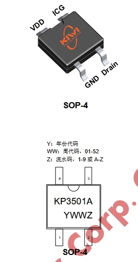 KP3501AVGA 采用 SOP-4 封裝,具體尺寸如下: