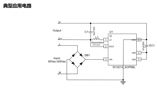 SI1321X系列芯片設計注重緊湊性與易用性,兼容CD32/43貼片電感和0410色環電感,無需額外的π型濾波或安規電容即可滿足EMI標準,大大簡化了電路設計。此外,輸入端免去了高壓電解電容的使用,進一步降低了成本和體積,使得該芯片在空間受限的應用場景中更具優勢。