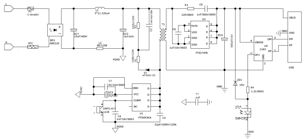 FT8493KA采用恒功率控制技術,確保在不同輸入電壓和負載條件下,輸出功率保持穩定。這種設計使得充電器能夠在各種電網波動和負載變化的情況下,為設備提供穩定的充電功率,提高了充電效率和設備的使用壽命。