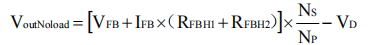 在三繞組應用中,輕載輸出電壓VoutNoload的計算公式為: