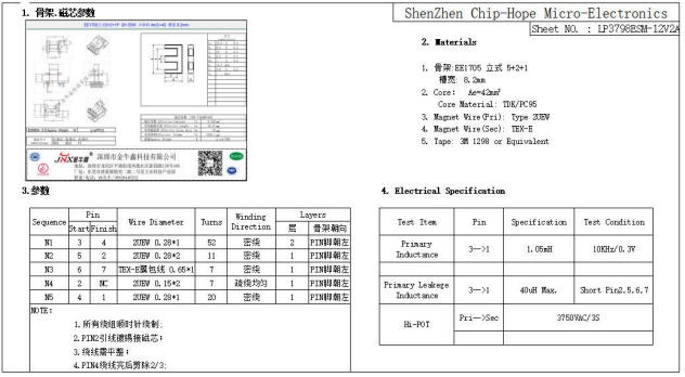 | T1 | EE1705 | Ae=42mm2,PC95 磁材,漏感 <25μH,繞組結(jié)構(gòu) 5+2+1 |