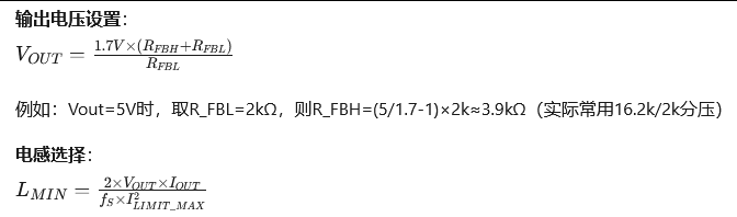 | 輸出過壓保護 (OVP) | FB電壓 > 1.5×Vref(約2.55V) | 立即關斷輸出 | 電壓恢復正常后自動恢復 |