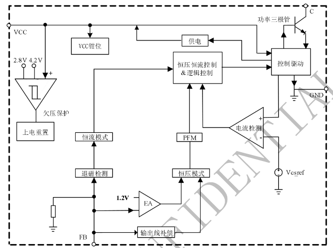 內(nèi)置啟動(dòng)電路:外圍不需要啟動(dòng)電阻,簡(jiǎn)化了設(shè)計(jì)。